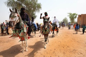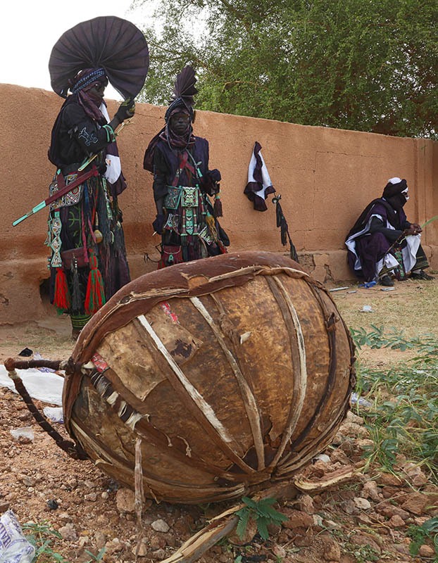 Saranno questi ultimi a danzare al suono dei tamburi (nominati “Etebel”, simbolo dell’unità delle Tribù Tuareg), mimando combattimenti di antica memoria con le spade e le lance (“Takoubas”) lungo le sabbiose e polverose stradine di Agadez.